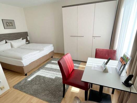 Unser modernes Gebäude an der Stadtmauer bietet ein komfortables und komplett ausgestattetes Apartment zum monatlichen Pauschalpreis. Ein lichter Innenhof, weite Flure, Gemeinschaftsraum, Fahrrad- un...