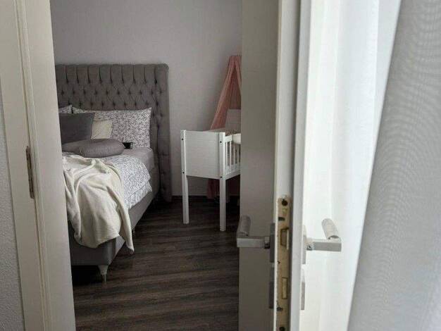 Gut aufgeteilte, helle 52 m2 Dachgeschosswohnung in einem ruhigen 6 Familienhaus. 2 Zimmer, Diele, Bad. Neue Innentüren und neuer Laminatboden im Wohnzimmer, Schlafzimmer und der Diele.