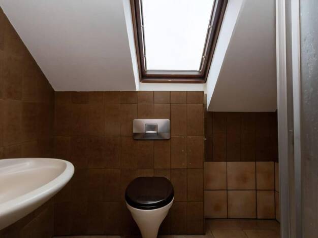 Die 3 Zimmer Wohnung befindet sich in einem zweigeschossigen Mehrfamilienhaus im Dachgeschoss. Der Zugang erfolgt über eine in grau gefliest Treppe. Die grauen Fliesen ziehen sich über den Flur und die Küche weiter. Die Wohn-/ Schlafräume sind mit modernem Designboden ausgestattet. Vom Essbereich gelangt man auf einen Balkon mit südlicher Ausrichtung. Sowohl das Schlafzimmer als auch das Badezimmer haben einen Blick auf den Wald. Das Badezimmer, ist mit Badewanne und Dusche ausgestattet. Die Wo...