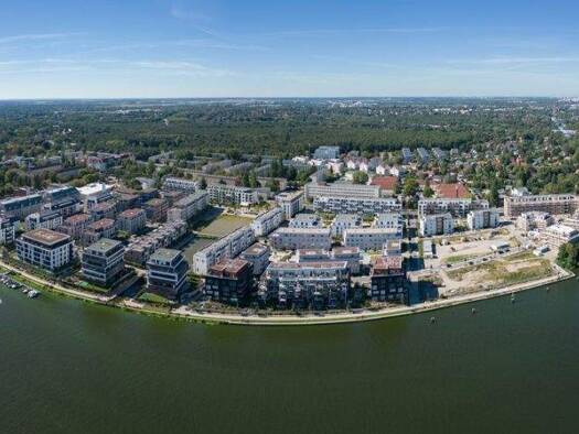 Das 2,5-Zimmer-Penthouse gehört zum Helling Hof und liegt im Wohnquartier 52° Nord. Es bietet eine faszinierende Sicht auf die Wasserlandschaft der Dahme. Die bodentiefen Fenster lassen viel natürliches Licht herein. Die großzügige von der Sonne verwöhnte Dachterrasse mit 50 m² bietet viel Platz für entspannende Stunden im Freien, Feiern mit Familie und Freunden oder das schönste Homeoffice der Stadt. Neben dem geräumigen Wohn- und Essbereich hat das Schlafzimmer über ein zusätzliches halbes Zi...