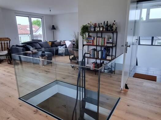 Die großzügig geschnittene Wohnung befindet sich im Dachgeschoss eines 2015/16 gebauten Mehrfamilienhauses mit 7 Mietwohnungen. Die Wohnung erreicht man über den Treppenaufgang oder direkt mit dem Fa...
