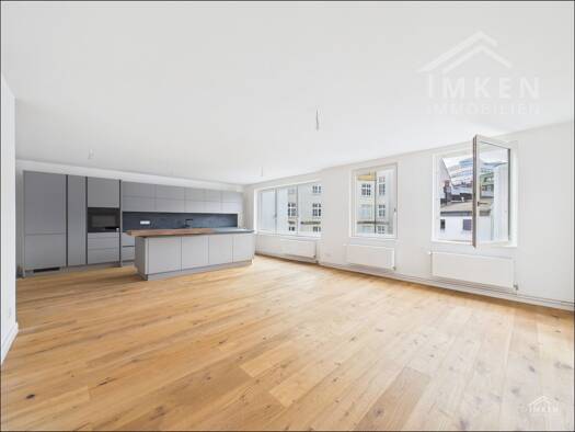 Diese außergewöhnliche Wohnung befindet sich in einem aufwendig und stilvoll sanierten, denkmalgeschützten Gebäude und vereint historischen Charme mit modernstem Wohnkomfort. Im Zuge der umfassenden Sanierung wurde großer Wert auf die Erhaltung architektonischer Details sowie auf eine hochwertige, zeitgemäße Ausstattung gelegt. Die Wohnung präsentiert sich als Erstbezug und erfüllt höchste Ansprüche an Design und Qualität. Herzstück der Wohnung ist die großzügige Wohnküche mit fließendem Überga...
