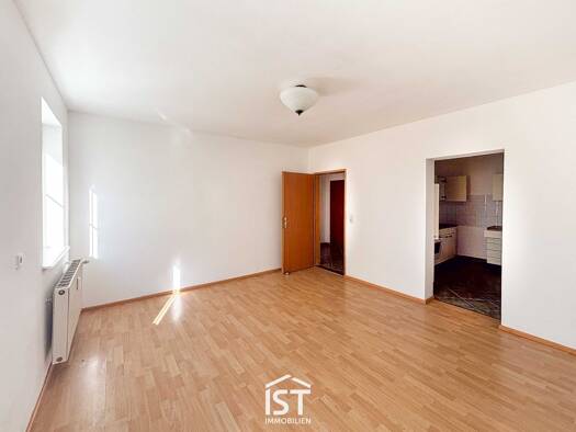 2-Zimmer-Wohnung mit Wohnküche und Schlafzimmer, Bad mit WC und Dusche, Balkon, Dachboden-Abteil und Kfz-Stellplatz.