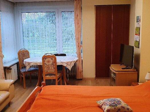 Das gesamte Nichtraucher-Apartment ist mit einem neuen Laminatboden ausgestattet. Es besteht aus einem kombinierten Wohn-/Schlafbereich mit einem 90cm großen Einzelbett, einer voll ausgestatteten Sin...