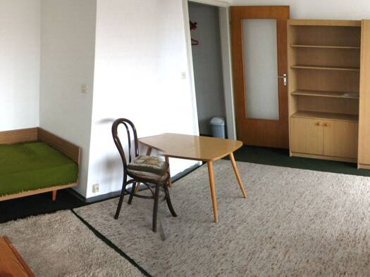 Frei ab Anfang März 2026 Komplett möbliert: Bett, Kleiderschrank, Schreibtisch, Schreibtischlampe, 2 kleinere Schränkchen, 2 Stühle, Klapptisch Küchennische mit Kochgelegenheit, Spüle und Kühlschrank...