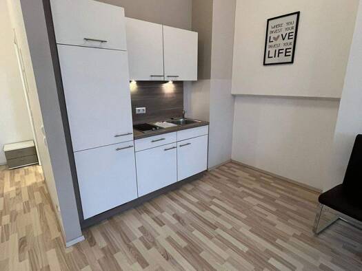 Die gepflegte 1-Zimmer-Wohnung befindet sich im 1. Obergeschoß eines Mehrfamilienhauses, welches sich auf 5 Etagen verteilt. Der Wohn-, Ess- Koch- und Schlafbereich ist attraktiv unterteilt und biete...