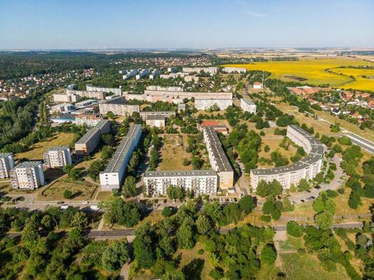 Das fünfgeschossige, sanierte Wohnhaus liegt nahe der Heide im landschaftlich reizvollen Norden von Halle. Die zentrale Lage innerhalb des Wohngebietes zeichnet diesen Standort aus. Der Wohnkomplex II ist sehr ruhig und stark begrünt. Zahlreiche Kinderspielplätze, ein Basketballplatz und ein Kindergarten machen das Wohngebiet für Familien attraktiv. Die Schulen befinden sich im I. WK und sind in ca. 10 Minuten zu erreichen. Die nahe Heide lädt zum Entdecken und zur Erholung ein.