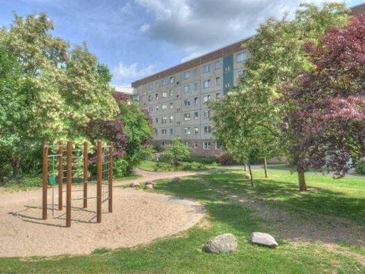 Der Eichelweg - eine 6 geschossige sanierte Platte im ruhig und grün gelegenen 2. WK in Heide-Nord. Eine Einkaufsmöglichkeit haben Sie in 3 Minuten Entfernung. Zur Schule und zum Kindergarten sind es ebenso nur 5 Minuten Fußweg. Einen Parkplatz können Sie zur Wohnung mit anmieten.