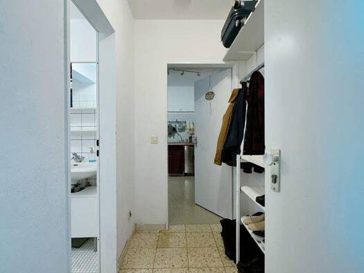 Sie betreten diese schöne Wohnung über eine kleine Diele, in der Sie gut eine Garderobe und ein schmales Sideboard aufstellen können. Das Badezimmer ist mit einem Waschbecken, einem Spiegel, einem WC...