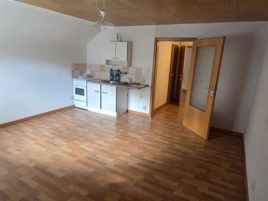 Vermietet wird hier eine 1-Zimmerwohnung auf 39 qm Wohnfläche mit eigenem Eingang in einem Vierfamilienhaus. Die Wohnung besteht aus einem Wohn-/Schlafraum, einer großen Küche mit EBK und einem Bad mit Dusche/WC. Der Waschmaschinenanschluss befindet sich im Bad.