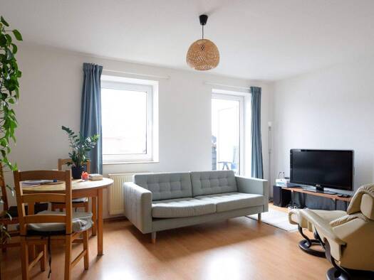 Objektbeschreibung Diese helle möblierte 1,5-Zimmer-Wohnung mit Einbauküche befindet sich im Dachgeschoss eines 24-Parteienhauses in 26133 Oldenburg. Jeder Wohnung steht ein Stellplatz auf dem Hof des Hauses zur Verfügung. Im Außenbereich finden die Bewohner zudem einen Abstellraum für Fahrräder und Mülltonnen. Die Wohnung kann zum 01.06.2026 bezogen werden. Raumaufteilung Über einen kleinen Eingangsbereich betreten Sie das helle und freundliche Wohnzimmer. Die moderne Einbauküche verfügt über ...
