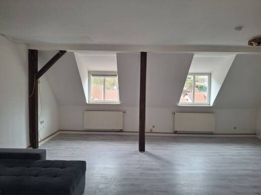 Die Wohnung besteht aus 1 Wohn-, 1 Schlaf und 2 Kinderzimmern. Bad und Küche sind mit Fenstern ausgestattet. Innerhalb der Wohnung gibt es noch einen separaten Abstellraum. Am Wohnzimmer befindet sich ein Balkon auf dem man die Sonne genießen kann. Auf dem Dachboden befindet sich eine, zur Wohnung gehörende, Bodenkammer. Auf dem Boden gibt es auch die Möglichkeit, Wäsche zum Trocknen aufzuhängen.