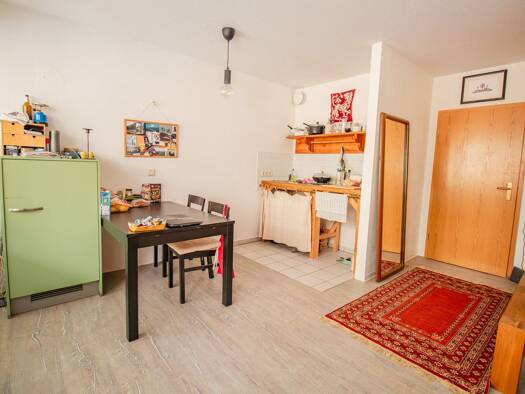 Praktische 1-Zimmer-Wohnung im 1.OG, Die Einbauküche kann mit genutzt werden.
