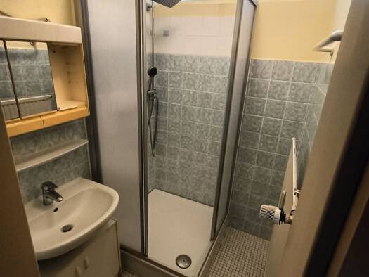 Die Wohnung im Erdgeschoss verfügt über zwei Zimmer, ein Badezimmer mit Dusche sowie eine separate Toilette. Eine Einbauküche ist NICHT vorhanden. Diese muss vom Mieter selbst beschafft werden und kann bei Auszug wieder mitgenommen werden.