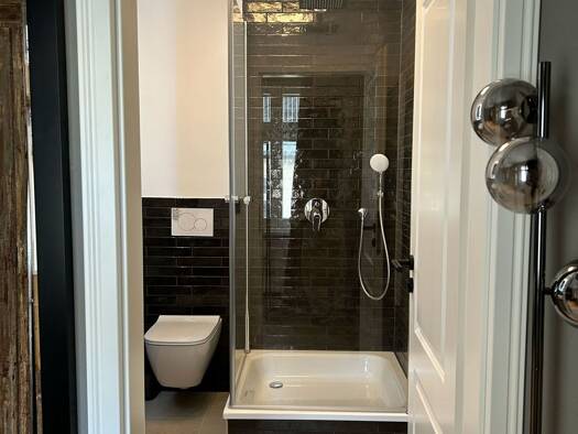 Voll möbliertes Studio-Apartment mit einer Kochnische und einem separaten Badezimmer. Diese stilvolle 22 m² große Einheit befindet sich im 4. Stock des Hinterhauses eines historischen Gebäudes, geleg...