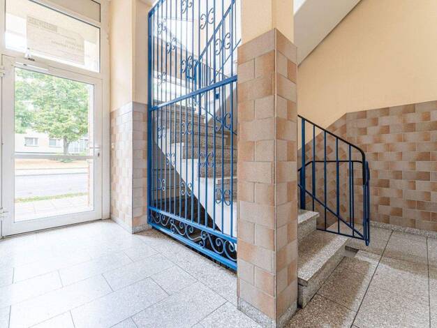 Das Gebäude wurde 1910 gebaut und 1996 komplett saniert. Die Wohnung befindet sich im 3. Obergeschoss. Die 2-Raum-Altbauwohnung ist komplett mit PVC-Belag ausgestattet. Ein Anschluss für Telefon/Inte...
