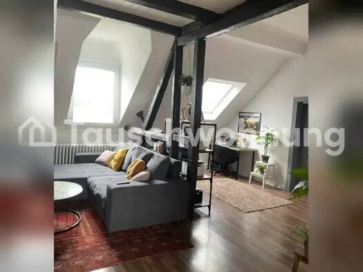 Gemütliche 2-Zimmer-Dachgeschosswohnung in Düsseldorf-Eller Ich biete meine helle und charmante 2-Zimmer-Dachgeschosswohnung in Düsseldorf-Eller (Stadtbezirk 8) zum Wohnungstausch an - bevorzugt gegen eine Wohnung in Köln. Die Wohnung verfügt über 48 m² Wohnfläche, aufgeteilt in ein Wohnzimmer, ein Schlafzimmer, eine separate Küche sowie ein Badezimmer mit Badewanne. Durch die Dachschrägen entsteht eine gemütliche Atmosphäre, ideal für Singles oder Paare. Die Kaltmiete beträgt 650 €, hinzu komm...
