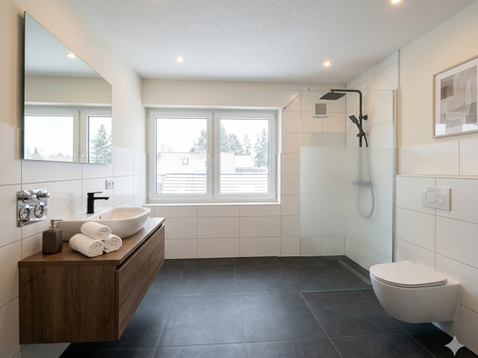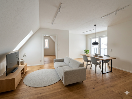 Diese moderne Obergeschosswohnung bietet auf rund 64 m² ein komfortables Zuhause mit einer gelungenen Mischung aus Helligkeit, Funktionalität und ansprechender Gestaltung. Der offen gehaltene Wohn- und Kochbereich wird durch große Fenster mit viel Tageslicht versorgt und bietet ausreichend Platz für eine gemütliche Wohnlandschaft sowie einen Esstisch. Die hochwertig ausgestattete Einbauküche fügt sich harmonisch in das Gesamtbild ein. Vom Wohnbereich aus gelangen Sie zudem direkt auf den Balkon...
