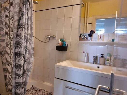 Es ist eine sehr ruhige Nachbarschaft und die Wohnung hat wirklich dicke Wände, sodass man die Nachbarn nie hört und sie einen auch nie hören. Durch die Glasfront der Wohnung fällt viel Sonnenlicht o...