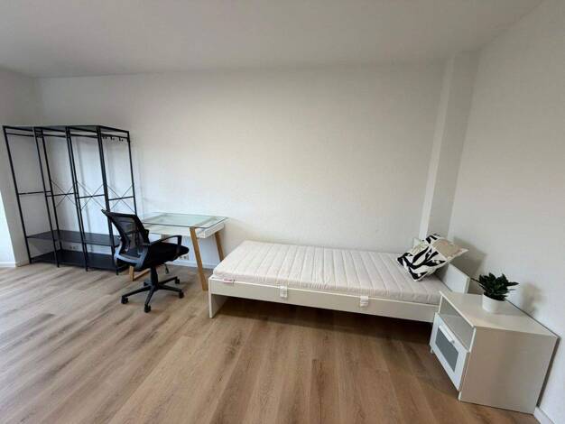 Helle und schöne Einzimmerwohnung in zentraler Lage (Erlangen-Bruck) mit Vollmöblierung. Nur max. 10 Minuten zur Uni (mit dem Rad/Bus). Zur Einrichtung gehören ein Sofa, ein Couchtisch, ein Bett mit ...