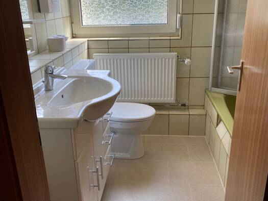 Alle Zimmer sind hell, vorhandene Küche ist vom großen Wohn- und Esszimmer durch Tür abgetrennt. Zwei Zugänge zum schönen Balkon. Kleiner Abstellraum und zusätzlicher Keller. Hausmeister- und Reinigungsdienst vorhanden. Nicht-Raucherwohnung. Nähe ÖPNV-Haltestellen und Naherholungsgebiet "Dönche".