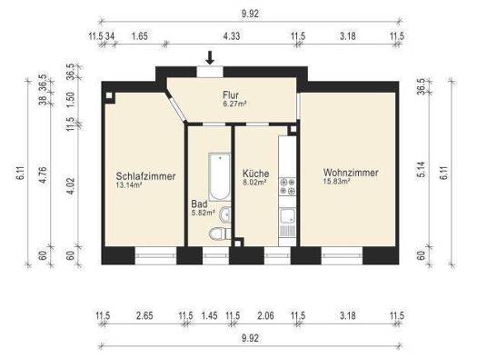 Die schöne 2 Zimmer Wohnung hat zwei gleichgroße Räume (22+23,5m²) und einer schönen großen Küche (13,5 m²). Das Bad (5,0 m²)ist komplett gefliest, hat eine Badewanne und auch ein Fenster. Neben dem ...