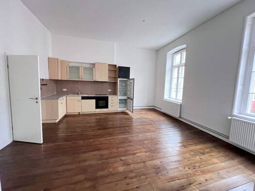 Die Wohnung befindet sich im 1. OG eines Mehrfamilienhauses mit 7 Wohnungen. Die Wohnküche/Wohnzimmer ist mit einer Einbauküche ausgestattet. Der aufgearbeitete Dielenboden gibt der Wohnung einen gem...