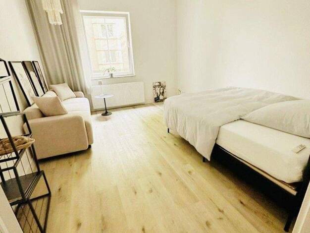 Diese 2025 vollständig kernsanierte 2-Zimmer-Wohnung mit Altbaucharme und 3 Meter hohen Decken, im Erdgeschoss eines gepflegten Mehrfamilienhauses bietet modernes, möbliertes Wohnen auf 41 m² - ideal...