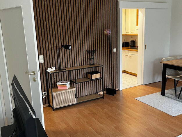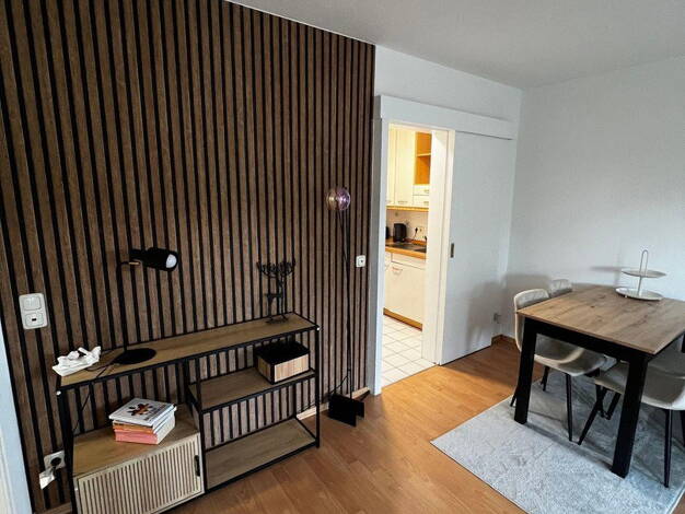 2025 neu renoviert und komplett möbliert 2 Zimmer im Dachgeschoss Tageslichtbad mit Wanne und Waschmaschine Einbauküche komplett ausgestattet knapp 20 m² Wohnzimmer - Schlafcouch, Esstisch, Fernseher Schlafzimmer mit 140er Boxspringbett, Kleiderschrank und Kommode Verdunklungsplissees in Bad, Schlafzimmer und Wohnzimmer Internet & Fernsehen im Preis enthalten
