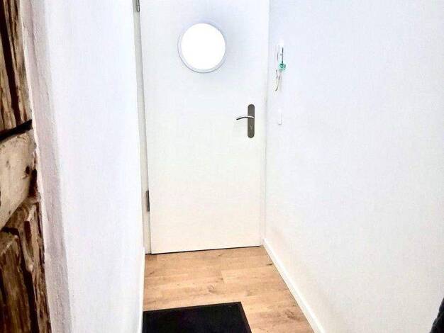 Raumaufteilung und Wohnambiente: Vom Flur aus erschließen sich alle Bereiche der Wohnung. Herzstück ist der geräumige Wohn- und Schlafraum, der dank großer Fensterflächen hell wirkt. Von hier aus besteht direkter Zugang zum Balkon, der einen Blick in das ruhige Wohnumfeld bietet. In diesem Hauptraum sowie im Flur wurde ein neuer Vinylboden in heller Holzoptik verlegt, der mit den weiß gestrichenen Wänden harmoniert. Eine praktische Abstellnische ist direkt vom Flur zugänglich und bietet wertvol...