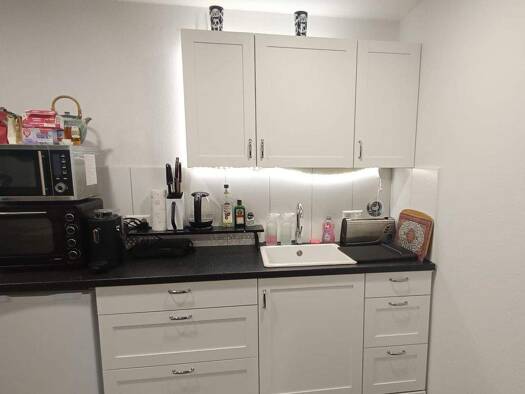 Sie finden die 2-Zimmerwohnung im ersten Obergeschoss eines Mehrfamilienhauses. Die ca. 40 m² große Wohnung verfügt über eine Diele, ein geräumiges Wohn- /Esszimmer, eine Küche, ein Schlafzimmer und ein Badezimmer. Im Erdgeschoss des Hauses befindet sich ein gemeinschaftlicher Kellerraum. Die Wohnung ist für maximal 1 Person geeignet.