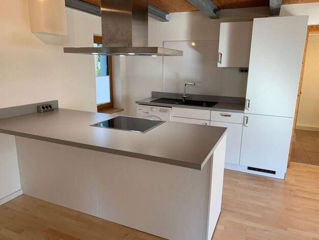 Die gemütliche Maisonette-Wohnung befindet sich im Dachgeschoss eines denkmalgeschützten 6-Familienhauses im Klosterhof in Sigmaringen-Laiz. Dieser Gebäudeteil wurde in den Jahren 1996/97 grundlegend auf Neubauniveau saniert. Die Wohnung hat eine großzügige Raumaufteilung und ist sehr hell. Im unteren Teil der Wohnung befinden sich 2 Schlafzimmer, das Duschbad mit dem Waschmaschinenplatz, die Küche mit angrenzenden Abstellraum, sowie das offene Wohn- und Esszimmer. Die Einbauküche kann ggf. vom...
