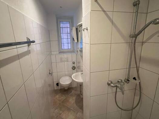 Beschreibung: Die Wohnung im Dachgeschoss verfügt über 3 Zimmer, Küche, alles tapeziert mit Raufaser weiß; ein Tageslichtbadezimmer mit Badewanne, Waschbecken, und einem separaten WC, Flur mit Einbauschrank, Balkon, separatem Kellerraum und Kfz-Stellplatz 50€. Die Wohnung wird über eine Öl-Zentralheizung beheizt. Der große Garten, mit Wäschetrockenplatz kann gemeinschaftlich genutzt werden. Laminatboden bzw. Fliesen, Gartenmitbenutzung. Ausstattung: Alle Zimmer und Flur mit Laminat. Küche, Bad ...