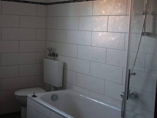 Das Wohnhaus besteht aus drei Einheiten und wurde 1960 erbaut. Diese 5-Zimmer-Wohnung liegt im Erdgeschoss und besitzt einen Balkon in Nordost-Richtung mit Blick auf Bad Orb. Neben dem Badewannen-Bad gibt es noch eine Gäste-Toilette. Die Böden sind mit Laminat ausgelegt. Die Wände sind mit Raufaser tapeziert und weiß angelegt. Das Bad hat helle Fliesen und Objekte. Es ist mit einer Badewanne ausgestattet und besitzt ein Fenster. Weiterhin gibt es einen Kellerraum im Kellergeschoss. Ein großer G...