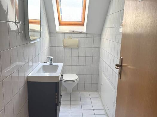 Objektbeschreibung 2 Zimmer Dachgeschosswohnung mit ca 40qm in Einfamilienhaus. Die Wohnung hat einen eigenen Zugang über eine Treppe im Außenbereich. Vor der Wohnung befindet sich eine kleinen Terra...