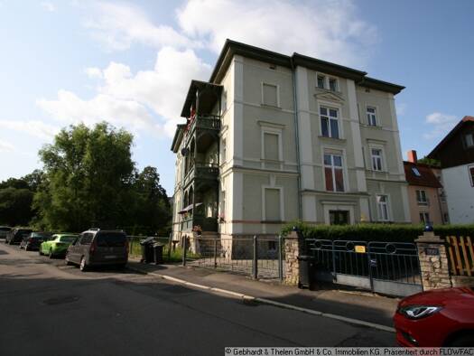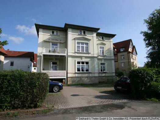Die angebotene 2-Zimmer-Wohnung befindet sich in einer charmanten Stadtvilla nahe dem historischen Zentrum und englischen Garten von Meiningen. Sie ist unmöbliert und verfügt auch über keine Einbauküche. Die Anzeigenbilder stammen aus der Nachbarwohnung, deren Grundriss indentisch ist. Keine Anmietung für eine Wohngemeinschaft oder bei Finanzierung durchs Jobcenter. Ein PKW-Stellplatz kann für 25,00 € mit angemietet werden.