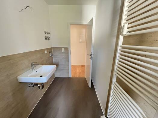 Objektbeschreibung Die Etagenwohnung im 2. Geschoss ist frisch gemalert. Das Bad hat zwei Fenster und ist mit Dusche, mit Wanne sowie mit zwei Waschbecken ausgestattet. Eine hochwertige Glasduschabtrennung und ein beleuchteter Spiegel sind für Sie schon installiert. Auf Wunsch kann gegen Aufpreis (mtl. 50€) eine Einbauküche nachgerüstet werden. Raumaufteilung Die Wohn- und Schlafräume sind mit hochwertigem Laminat ausgelegt. In der Küche und im Bad sind helle Wand- und Bodenfliesen verlegt. Zur...