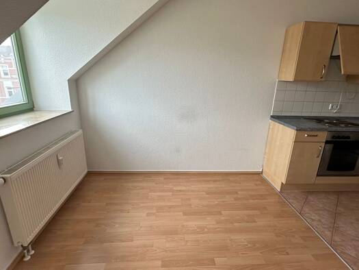 Objektbeschreibung Die gemütliche Zweiraumwohnung befindet sich im Dachgeschoss eines sanierten 6-Familienhauses im Stadtteil Ebersdorf. Besonderheiten sind der große Balkon, der Kaminofen im Wohnzimmer und das moderne Tageslichtbad mit Eck-Badewanne. In der Wohnung befindet sich eine neuwertige Einbauküche, welche im Mietpreis enthalten ist. Zur Wohnung gehören weiterhin ein Abstellraum im Treppenhaus, ein Kellerabteil sowie eine Bodenkammer. Fußbodenbeläge als Laminat bzw. Fliesen. Stellplätz...