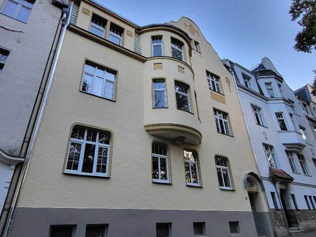 4-Familien-Wohnhaus mit 1 x 5-Raum-WE im EG, 2 x 5-Raum-WE im 1.OG und 2. OG (jeweils mit großem Balkon/Loggia) und 1 x 4-Raum-WE im DG mit Mieterkeller und Stellplätzen. Das Objekt verfügt über ausreichend Abstellgelegenheiten z.B. für Fahrräder im Kellerbereich, Kinderwagen im Erdgeschoss. Die Modernisierung des Hauses erfolgte 2018 - 2019 sowie 2023, die neue Dacheindeckung mit Dämmung wird realisiert im Jahr 2023. Isolierglas-Fenster, Laminatböden, Bad mit Dusche und Badewanne, große Terras...