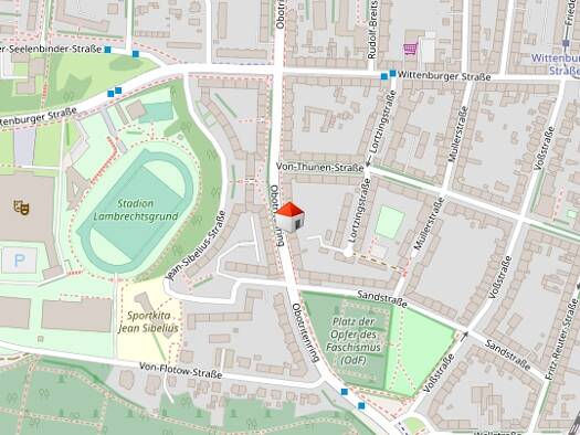 Das Haus befindet sich im ruhigen Teil der Lübecker Straße 64 in Schwerin in der Paulstadt. Die Lübecker Straße ist in dem Bereich eine kleine Einbahnstraße. Insgesamt verfügt das Haus über 6 Einheiten. Für die beiden Wohnungen im Erdgeschoss steht ein kleiner Gemeinschafts-Garten mit jeweils einer Terrasse zur Verfügung.
