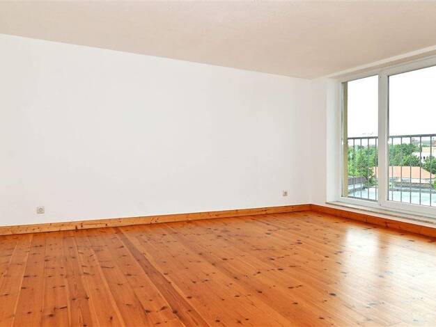 Die Wohnung befindet sich in einem gepflegten Mehrfamilienhaus im 2.OG. Von der Diele geht es in den nach Westen ausgerichtete Wohnraum (23,5 m²) mit offener Küche und Zugang zum Balkon. Nach Osten liegen 2 Räume (19 m² und 11,5 m²). Außerdem gehen von der Diele das Bad mit Fenster, Wanne und Dusche und ein Gäste-WC ab. Siehe Grundriss