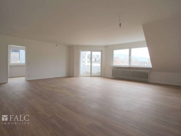 Diese im Jahr 2024 kernsanierte Wohnung im Dachgeschoss bietet auf einer Wohnfläche von ca. 106 m² optimalen Raum für Paare oder die kleine Familie. Insgesamt stehen Ihnen ein weitläufiges und lichtdurchflutetes Wohnzimmer zur Verfügung, das direkt an die Küche mit Vorratsraum angrenzt. Beide Zimmer haben einen Ausgang zum Balkon. Drei weitere Zimmer können individuell genutzt werden. Das Badezimmer mit großzügiger Dusche wurde neu installiert. Praktischerweise verfügt die Wohnung über ein sepa...