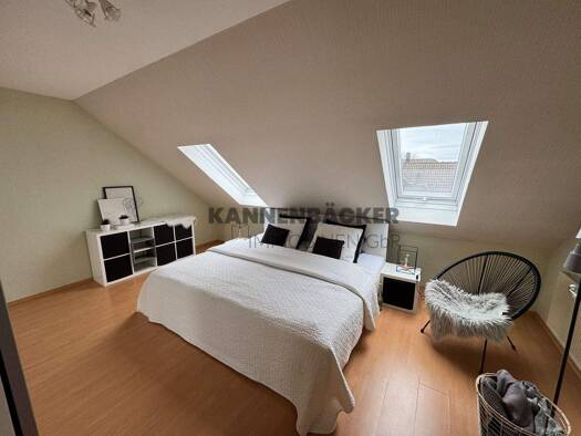 Zur Vermietung steht eine helle, freundliche 3-Zimmer Dachgeschosswohnung mit einer ansprechenden Ausstattung. Die Wohnung befindet sich in einem Mietsobjekt mit 6 Parteien. Auf ca. 82 m² Wohnfläche verfügt die Wohnung über 3 Zimmer, Küche inkl. Abstellkammer, Badezimmer mit Badewanne. Damit ist dise bestens geeignet für einen zwei bis drei Personenhaushalt. Balkon und ein Kellerraum gehören ebenfalls zu den Räumlichkeiten. Ein Anschluss für die Waschmachine und Trockner befinden sich in der Wa...