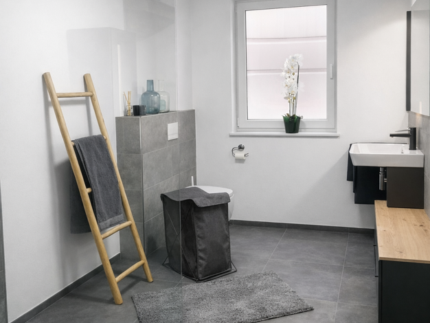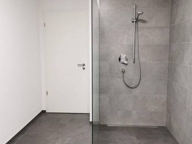 In dem modernen Mehrfamilienhaus befinden sich insgesamt neun Wohneinheiten. Die hier angeboten ca. 81 m² großen Wohnungen befinden sich im 1. Untergeschoss. Durch die Hanglage verfügt die Wohnung über einen Balkon mit Blick ins Grüne. Über den zentralen Flur der Wohnung erreichen Sie alle Räume. Sie verfügt über ein Schlafzimmer, einen großen und offenen Wohn- und Küchenbereich, einen Hauswirtschaftsraum sowie einem Bad mit großer Dusche und ein Gäste-WC. Dank der großen Fensterfront des Wohn-...