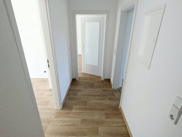 Objektbeschreibung Zum Wohnobjekt gehören insgesamt 26 Wohnungen und 2 Gewerbeeinheiten sowie ein großer Parkplatz und ein eigener kleiner Spielplatz. Hausmeisterdienst vor Ort. Raumaufteilung Die helle und freundliche Wohnung wurde frisch renoviert und mit neuem Bodenbelag ausgestattet. Vom Flur aus gelangen Sie ins Wohnzimmer mit einer offenen Küche.