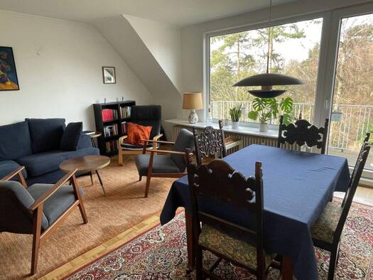 Diese traumhafte Dachgeschosswohnung sucht ab sofort einen Mieter, der vor den Toren Hamburgs am Wochenende und in den Ferien ausspannen möchte und Lust auf das gemeinsame Bewirtschaften eines Gartens hat. Die Wohnung eignet sich perfekt als Freizeit und Wochenenddomizil und ist nicht für eine Dauerbenutzung vorgesehen. Es ist eine von drei Wohneinheiten eines freistehenden Hauses, das auf einem weitläufigen Grundstück (über 4.000m²) mit eigenem Gewässer steht. Aus deiner Wohnung (1. Stock, nic...