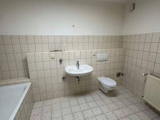 Alle Räume sind direkt über den Flur erreichbar. Ein Tageslichtbad mit Wanne und ein lichtdurchflutetes Wohnzimmer mit angrenzenden Balkon freuen sich auf neue Bewohner. Die Wohnräume sind mit neuem ...