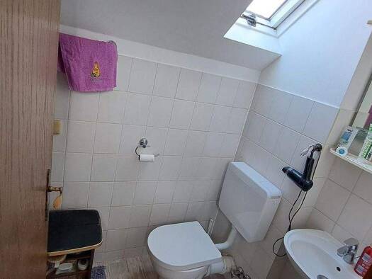 Die 2-Zimmer-Wohnung befindet sich im Dachgeschoss eines gepflegten Gebäudes in Mainz. Auf ca. 32 m² Wohnfläche birgt die Dachschräge ein behagliches Wohn- und Schlafambiente. Das moderne Badezimmer ist mit weißen Fliesen und einem Dachfenster ausgestattet. Die Wohnung ist hell und einladend gestaltet.