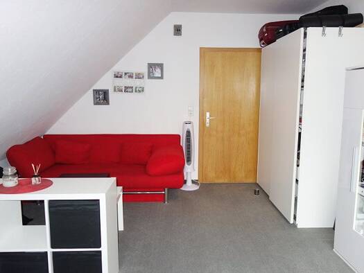 Gemütliches 2 Zimmer-Appartement im Dachgeschoss eines sehr gepflegten Wohnhauses mit zwei Eingängen und neun Wohnparteien. Auf rd. 35 m² stehen Ihnen hier ein Wohnzimmer mit Balkon, ein Schlafzimmer, eine eingerichtete Küche sowie ein Bad mit Wanne und WC zur Verfügung . Die Wohnung wird frisch gestrichen übergeben. Ein separater Kellerraum gehört zur Wohnung, der Wasch- und Trockenraum steht in gemeinschaftlicher Nutzung. Ein Pkw-Stellplatz kann für 25,-- EUR angemietet werden. Ein neuer Ener...