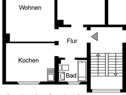 Objektbeschreibung Es handelt sich um ein 8 Parteienhaus auf vier Etagen. Raumaufteilung Die Wohnung besteht aus einem große Wohnzimmer, einer geräumigen Küche, einem Schlafzimmer und einem Badezimme...